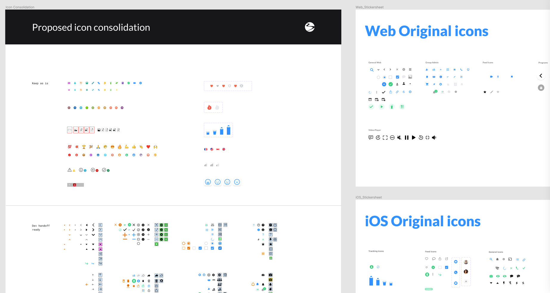 I took it upon myself to gather all visual patterns from submitted designs onto single pages, principally separated by iOS, Android, and Web, to find out what was already in the files, in code, and approved.